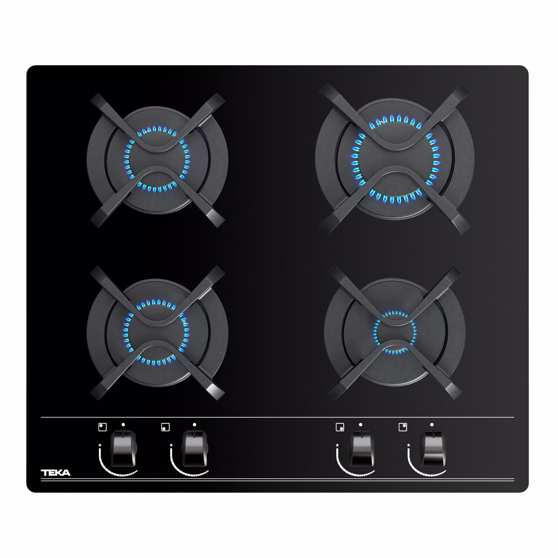 Placa Cristal Gas de 60 cm con mandos frontales ergonómicos de gas natural